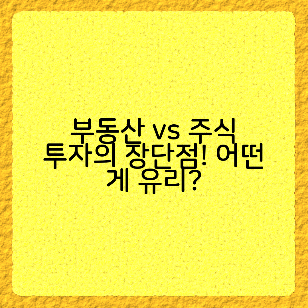 부동산과 주식 각각의 장단점을 비교하고, 자신의 재정 상황과 목표에 맞는 최적의 방안을 찾아가는 과정이 필요합니다. 부동산과 주식 간의 비교로 더욱 깊이 있는 이해를 갖추고 나만의 투자 계획을 수립해보겠습니다. 지금부터 자세히 알아보겠습니다.